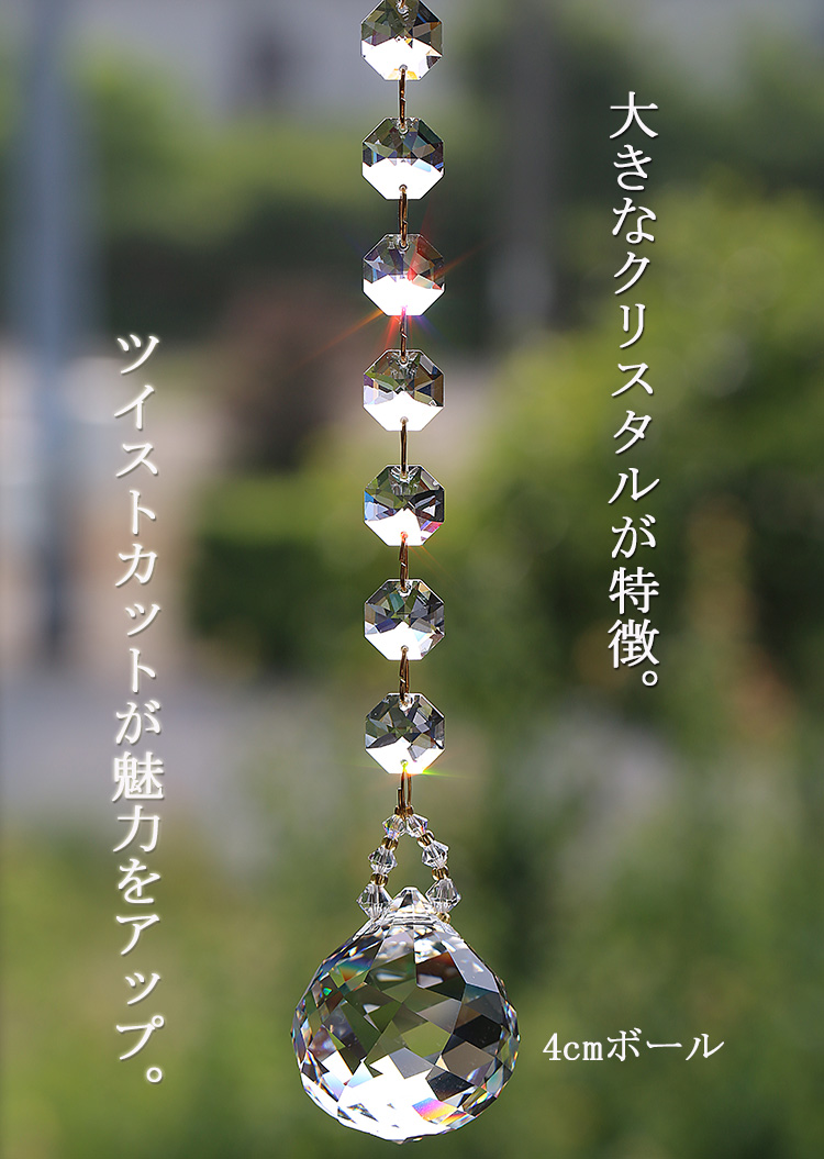 SWAROVSKI(スワロフスキー)製のクリスタルだけで作られた最高級のサンキャッチャー。専門店だからこその拘り、そして品質の高さ。 多くの卸販売にてその技術は高く評価されております。 女性が喜ぶプレゼント。 2015年6月販売開始。 大き目のクリスタルで迫力があります。 ほかと違うのがいい!! と言う方にも最適。
